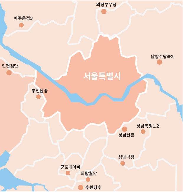 파주운정3, 인천검단, 부천원종 등이 서부권입니다. 파주운정과 인천검단은 이미 신도시 인프라가 갖춰져 있는 만큼 기본적인 수요가 뒷받침될 것으로 보입니다. 특히 인천검단은 1차 인천계양지구 청약 성공의 후광을 입을 수 있습니다. 부천원종지구도 입지는 좋다고 합니다. 부천시 거주자만 청약할 수 있습니다. 파주운정3은 서울에서 다소 떨어져 있다는 지적이 있지만 GTX-A 노선이 계획돼 있는 만큼 입주시기에는 이를 활용할 수 있을 것으로 보입니다. '다크호스'로 꼽히고 있습니다.