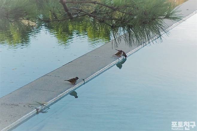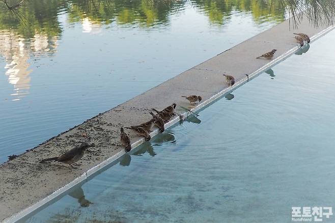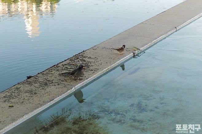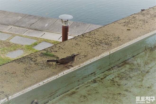 모두들 떠난 후에야 직박구리도 목을 축였다.
