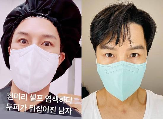 가수 겸 탤런트 김동완이 흰머리 셀프 염색 고충을 토로했다.
