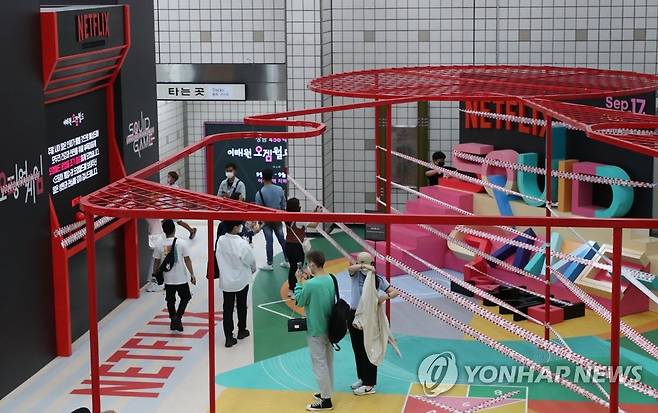 지난 5일 개장한 '오겜월드'는 넷플릭스 코리아가 '오징어 게임'을 홍보하기 위해 드라마 속 일부 장면과 비슷하게 조성한 오프라인 체험 공간이다. 서울교통공사는 신종 코로나바이러스 감염증(코로나19) 우려로 '오겜월드' 운영을 조기 종료하고 철거한다고 밝혔다. 2021.9.26