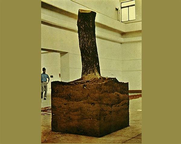 그해 그는 긴 모색 끝에 데뷔작 '신체항'을 내놓았다. 보이는 나무와 보이지 않은 지층을 통째로 가시화해 획기적이다. 정부의 과도한 개발 정책에 반발해 나무를 뿌리째 옮겨놨다. 노자의 팬인 그가 이런 시책을 좋아할 리가 없다. 여기엔 현대미술의 선구자인 뒤샹의 정신도 반영되었다. '공간'에 당시의 통제와 감시의 '사건'을 끌어들여 '장소성'도 부여했다.