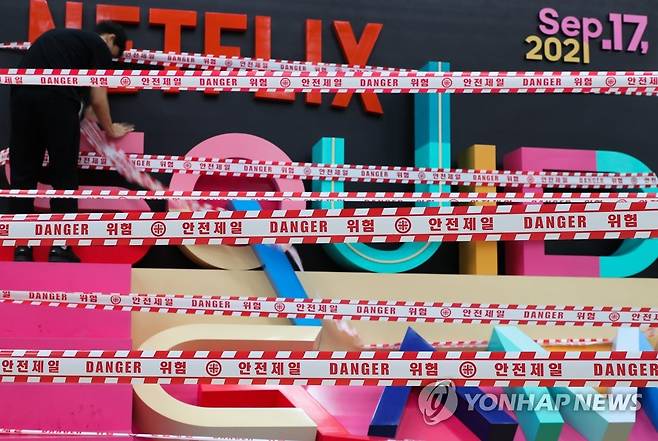 코로나19 감염 우려에 이태원역 '오징어 게임' 세트장 조기 철수