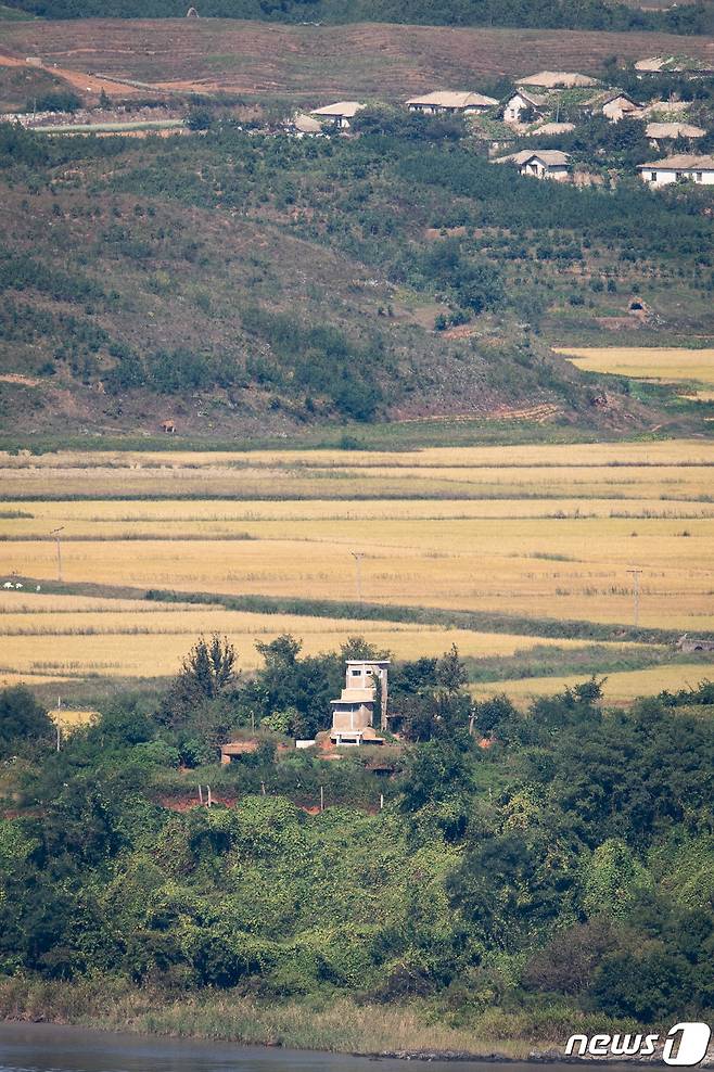 (파주=뉴스1) 유승관 기자 = 김여정 북한 노동당 부부장이 연이틀 문재인 대통령의 종전선언 제의에 '긍정 담화'를 내놓은 가운데 26일 경기 파주 오두산통일전망대에서 바라본 북한 개풍군 마을에 적막이 흐르고 있다.