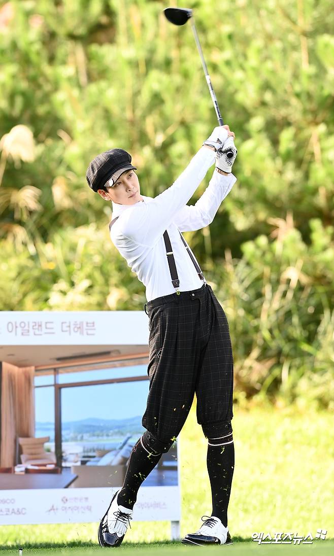 (엑스포츠뉴스 안산, 고아라 기자) 26일 경기도 안산 아일랜드 CC(파72·6,613야드)에서 열린 한국여자프로골프(KLPGA) 투어 '엘크루-TV조선 프로 셀러브리티 2021'(총상금 6억 원, 우승상금 1억 800만 원) 최종라운드, 심지호가 1번홀 티샷을 날리고 잇다.