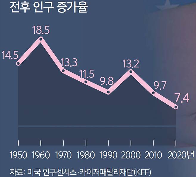 미 인구통계국은 최근 관련 자료를 발표하고 백인 인구가 1억9100만명으로 2010년(1억9600만명)보다 줄었다고 밝혔다. 미국은 1790년 독립 이후 10년마다 인구조사를 시행하는데, 백인 인구의 절대치가 감소한 것은 이번이 처음이다. 전체 미국인 중 백인의 비율도 57.8%로 2010년(63.7%)에 비해 감소했다.