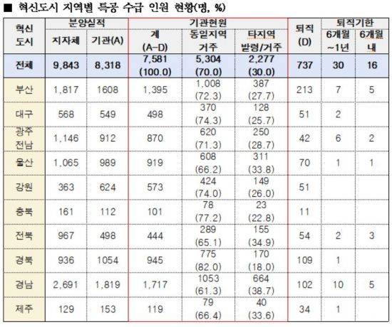 혁신도시 이전 공공기관 임직원, 10명 중 3명이 '특공 먹튀'
