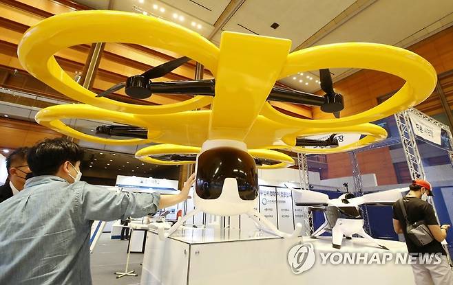 (서울=연합뉴스) 이재희 기자 = 26일 오전 서울 강남구 코엑스에서 열린 '2021 무인이동체산업엑스포'에서 관람객들이 전시를 둘러보고 있다. 2021.9.26