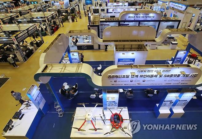 (서울=연합뉴스) 이재희 기자 = 26일 오전 서울 강남구 코엑스에서 열린 '2021 무인이동체산업엑스포'에서 관람객들이 전시를 둘러보고 있다. 2021.9.26