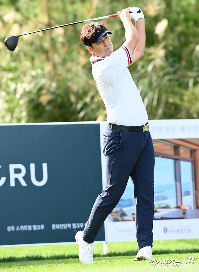 (엑스포츠뉴스 안산, 고아라 기자) 26일 경기도 안산 아일랜드 CC(파72·6,613야드)에서 열린 한국여자프로골프(KLPGA) 투어 '엘크루-TV조선 프로 셀러브리티 2021'(총상금 6억 원, 우승상금 1억 800만 원) 최종라운드, 김성수가 1번홀 티샷을 날리고 있다.