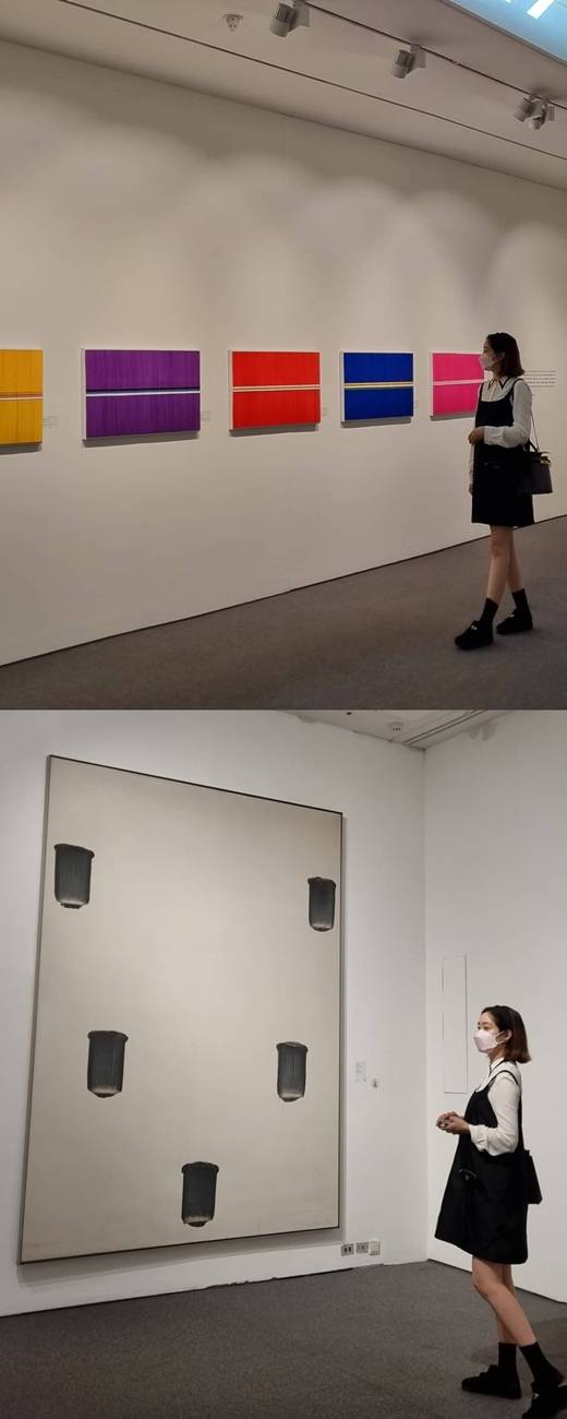 공개된 사진에는 전시회를 방문한 성유리의 모습이 담겼다. 성유리는 하얀 블라우스에 검정색 원피스를 매치, 단아한 매력을 뽐냈다. 동글동글 다소 투박한 신발과 머리띠가 깜찍함을 더 한다. 날씬한 성유리의 D라인 역시 시선을 사로잡는다.