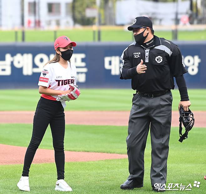송가인 '시구 전 간단한 설명을 듣고'[엑's HD포토]