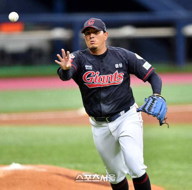 롯데 선발 프랑코가 26일 2021프로야구 키움 히어로즈와 롯데 자이언트의 경기 2회말 2실점한 후 계속된 위기에서 송성문을 투수앞 땅볼로 처리하고 있다. 2021.09.26.