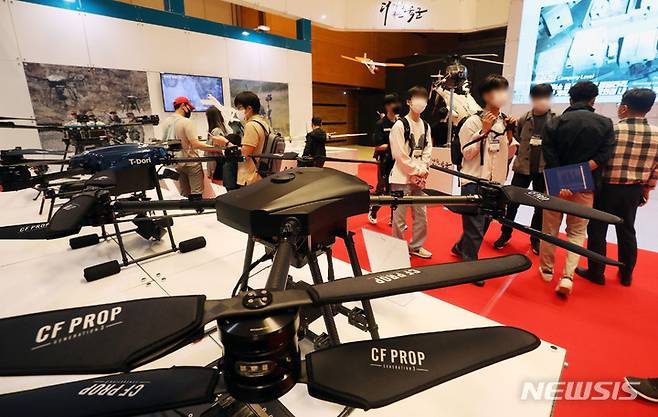[서울=뉴시스] 홍효식 기자 = 26일 서울 강남구 코엑스에서 열린 2021 무인이동체산업엑스포를 찾은 관람객들이 행사장을 둘러보고 있다. 이번 박람회는 28일(화)까지 진행한다. 2021.09.26. yesphoto@newsis.com