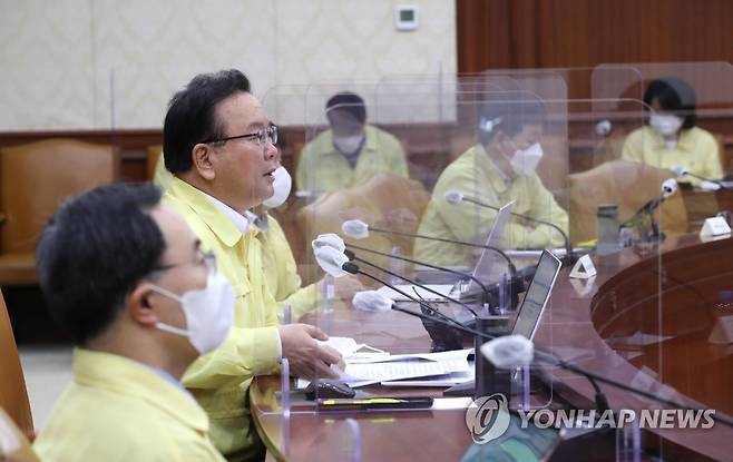 (서울=연합뉴스) 백승렬 기자 = 김부겸 국무총리가 26일 오후 정부서울청사에서 열린 코로나19 대응 중앙재난안전대책본부 회의를 주재하고 있다. 2021.9.26