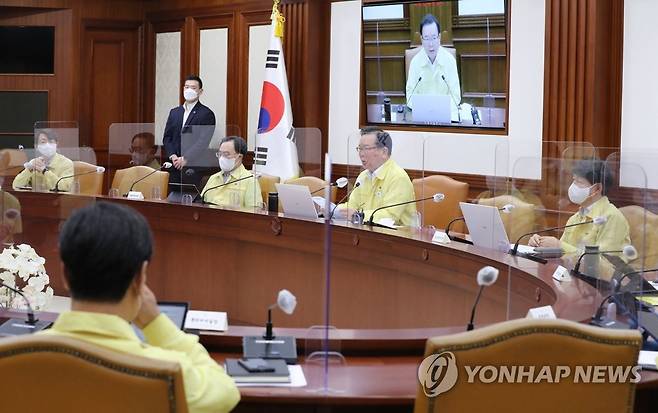 (서울=연합뉴스) 백승렬 기자 = 김부겸 국무총리가 26일 오후 정부서울청사에서 열린 코로나19 대응 중앙재난안전대책본부 회의를 주재하고 있다. 2021.9.26
