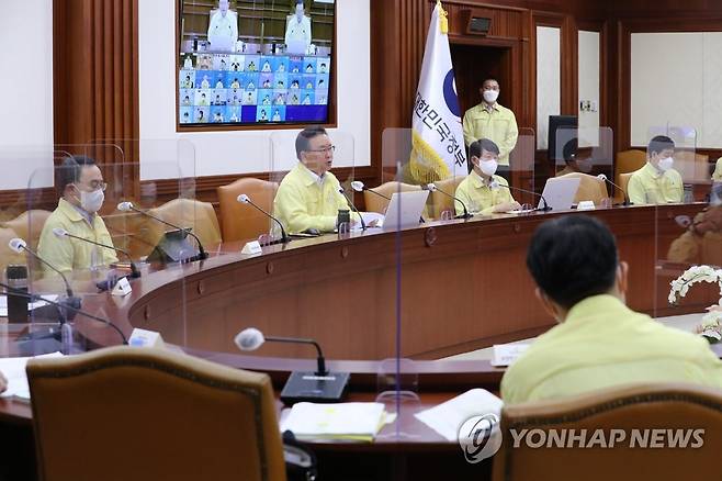 (서울=연합뉴스) 백승렬 기자 = 김부겸 국무총리가 26일 오후 정부서울청사에서 열린 코로나19 대응 중앙재난안전대책본부 회의를 주재하고 있다. 2021.9.26