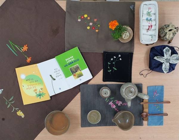 "결혼해서 가정주부로만 살았어요. 딸들이 대학을 가면서 내 곁을 떠난 후 오는 빈둥지의 허전함과 외로움을 견딜 수가 없었고, 삶에 의욕이 없고 우울감이 찾아오는 날이 많았어요. 그때 지인의 권유로 다도을 시작하고 차 생활에 몰입하며서 차의 매력에 푹 빠졌지요. 그 속에 공부해야 할 역사 복식 음악 음식 등 공부해야 할 것이 많았어요. 정신없이 차의 세계에 흠뻑 취해 살아서 다른 곳에 마음을 둘 여유가 없었습니다. 다도를 하면서 차 문화 경영 학과 대학원도 수료하고 자수도 10년을 했지요. 병행해서 산수화 그림도 그리며 바쁘게 살아왔습니다."
