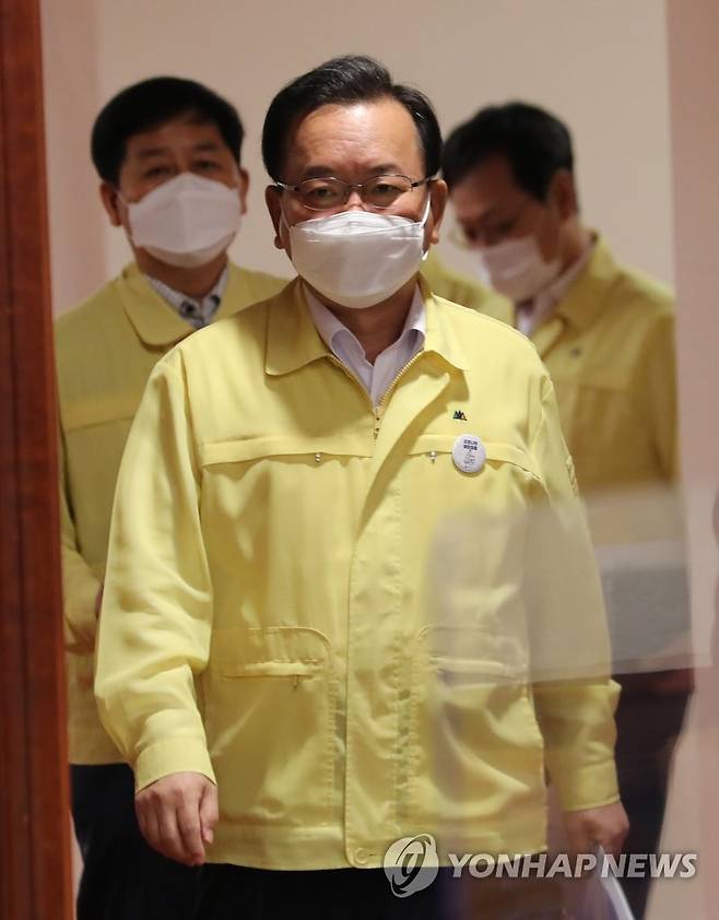 (서울=연합뉴스) 백승렬 기자 = 김부겸 국무총리가 26일 오후 정부서울청사에서 열린 코로나19 대응 중앙재난안전대책본부 회의에 참석하고 있다. 2021.9.26