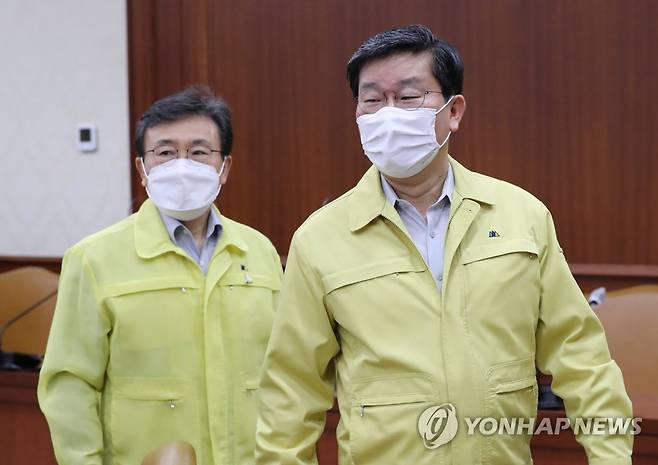 코로나19 중대본회의 참석하는 전해철 장관과 권덕철 장관