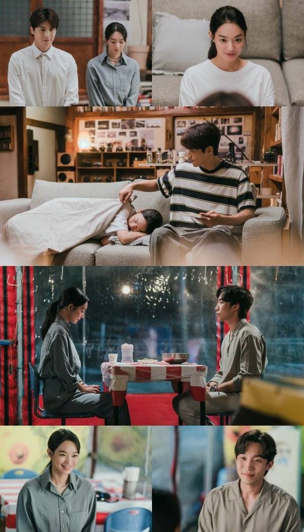 먼저 첫 번째 스틸에는 두식의 집에서 오붓한 시간을 보내고 있는 두 사람의 모습이 보는 것만으로도 미소를 자아낸다. 소파에 누워 잠들어 있는 혜진과 조심스럽게 담요를 덮어주고 있는 두식은 그 자체만으로도 완벽한 로맨틱 분위기를 완성한 것은 물론, 스스럼없이 서로에게 가까워지고 있는 이들의 관계가 어떤 전개로 이어질 것인지 흥미를 무한 자극한다. 특히 특유의 사랑스러운 표정으로 두식과 마주 앉은 혜진의 모습에서는 은은한 설렘도 함께 느껴지고 있는바. 두식을 향한 진짜 감정이 무엇인지 귀추가 주목된다.