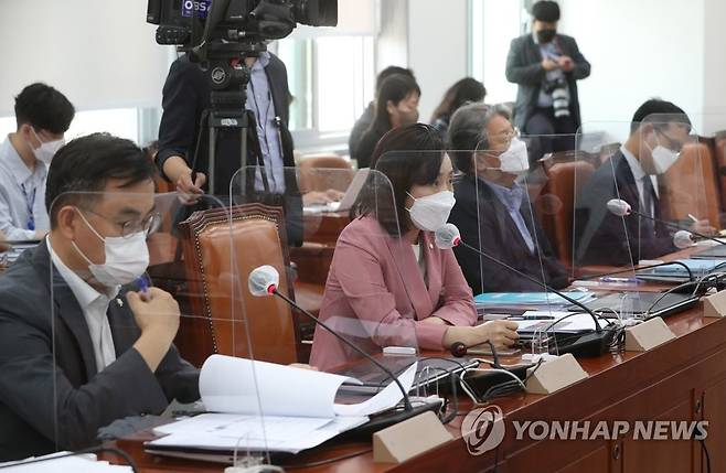 (서울=연합뉴스) 진성철 기자 = 국민의힘 전주혜 의원(왼쪽 두번째)이 26일 서울 여의도 국회에서 열린 언론중재법 8인 협의체 회의에서 발언하고 있다. 2021.9.26 [국회사진기자단]