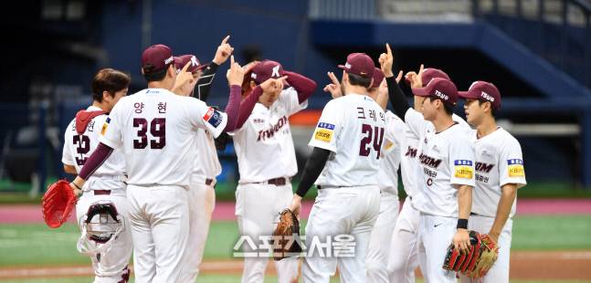 롯데전 11-2 승리 자축하는 키움 선수들[포토]