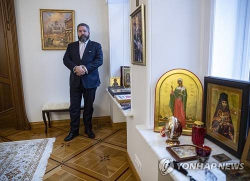 epa09489162 Grand Duke George Mikhailovich Romanov of Russia poses for a photo in his apartment in Moscow, Russia, 21 September 2021 (issued 26 September 2021). George Mikhailovich Romanov is a descendant of the Romanov family through his mother, recognized by a part of the monarchists (Cyrilists) as the heir to the supremacy in the Russian Imperial House. He is the only child of Maria Romanova and Prince of Prussia Franz Wilhelm. He is a direct descendant (great-great-grandson) of the English Queen Victoria through his great-grandmother, English princess Victoria Melita, hence ranked 140th in succession to the British throne. The engagement to Victoria Bettarini took place in the Kostroma Ipatiev Monastery in January 2021. The wedding is scheduled for 01 October 2021 at St. Isaac's Cathedral in St. Petersburg with about 400 guests including the Spanish king Felipe VI and queen Letizia. EPA/SERGEI ILNITSKY