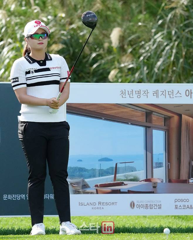 [이데일리 골프in(안산)=조원범 기자]26일 경기도 안산시 대부도에 위치한 아일랜드CC에서 '엘크루-TV조선 프로 셀러브리티 2021'(총상금6억원,우승상금1억8백만원)최종라운드가 열렸다.최혜진이 1번홀에서 경기를 하고 있다..
