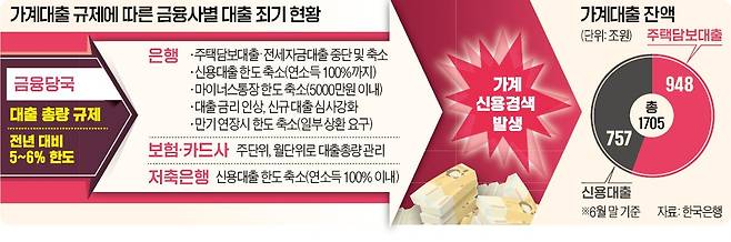 이런 연쇄적인 대출 한파는 은행·카드사뿐 아니라 저축은행 보험회사 등 전 금융권이 동시에 총량 관리에 들어가면서 더 심해지는 모양새다.