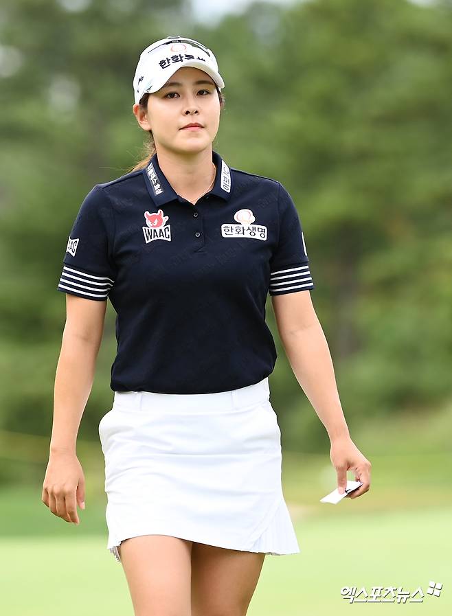 경기를 마친 김지현이 이동하고 있다.