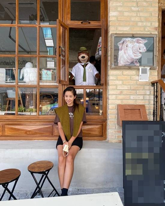 사진 속에는 한 상점을 배경으로 기념사진을 남기는 은보아의 모습이 담겨 있다.