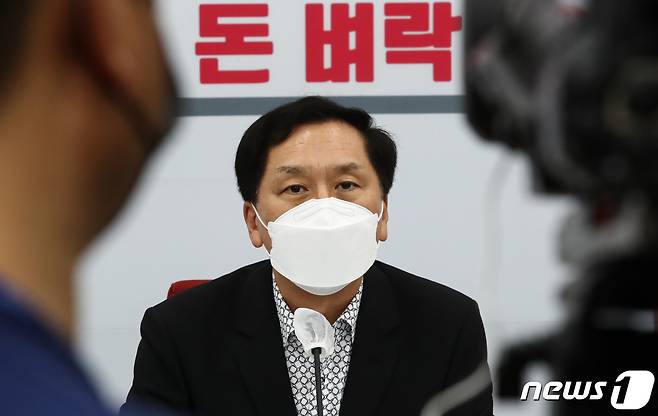 (서울=뉴스1) 오대일 기자 = 김기현 국민의힘 원내대표가 26일 오후 국회에서 열린 긴급 최고위원회의를 마친 후 현안 브리핑을 하고 있다. 김 원내대표는 이 자리에서 '화천대유자산관리'로부터 퇴직금 명목으로 50억원을 수령한 아들의 일로 논란에 휩싸인 곽상도 의원과 관련, "오늘 곽 의원 아들과 관련한 언론 보도가 있었고, 곽 의원이 대구시당에 탈당계를 제출했다는 보고를 받았다"고 밝혔다. 2021.9.26/뉴스1