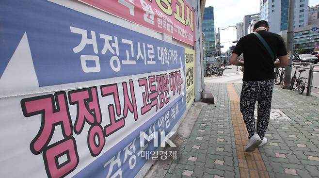 2022수능 검정고시 수험생 비율이 27년래 최고치를 기록한 가운데 26일 서울의 한 검정고시 학원에 대입검정고시 광고가 붙어있다. 2021.09.26
