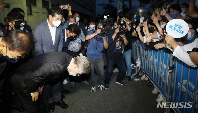 [완주=뉴시스] 전북사진기자단 = 더불어민주당 대선 후보 선출 전북 합동 연설회가 열린 26일 전북 완주군 우석대학교에서 투표 결과 발표를 마친 이재명 후보가 지지자들에게 깊은 감사의 인사를 하고 있다. 2021.09.26. pmkeul@newsis.com