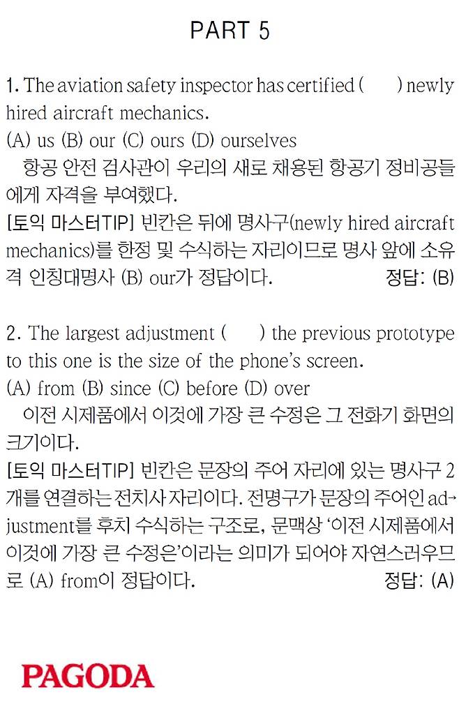 [파고다 강남 스타토익 RC유나신] PART 5