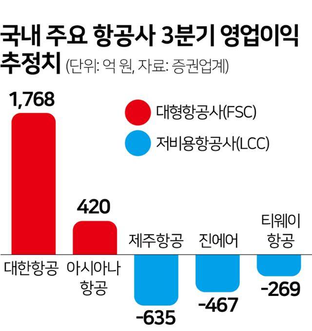 지속되는 항공업계 양극화.. 3분기 실적도 대형항공사 '맑음, ' LCC '흐림'