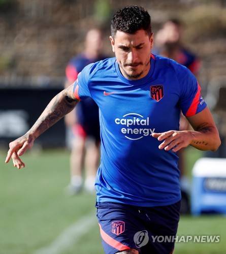 epa09489437 A handout photo made available by Atletico Madrid shows Uruguayan defender Jose Maria Gimenez during a training session at Wanda sports city in Majadahonda, Madrid, Spain, 26 September 2021. Atletico Madrid will face AC Milan upcoming 28 September in their UEFA Champions League match. EPA/- HANDOUT HANDOUT EDITORIAL USE ONLY/NO SALES