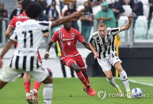 epa09489546 Juventus? Dejan Kulusevski and Sampdoria?s Omar Colley in action during the Italian Serie A soccer match Juventus FC vs UC Sampdoria in Turin, Italy, 26 September 2021. EPA/ALESSANDRO DI MARCO