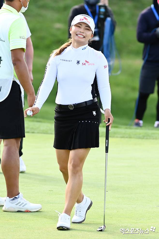 (엑스포츠뉴스 안산, 고아라 기자) 26일 경기도 안산 아일랜드 CC(파72·6,613야드)에서 열린 한국여자프로골프(KLPGA) 투어 '엘크루-TV조선 프로 셀러브리티 2021'(총상금 6억 원, 우승상금 1억 800만 원) 최종라운드, 김지영2가 18번홀 이글로 마무리하며 최종 12언더파 204타 3위로 경기를 마쳤다.