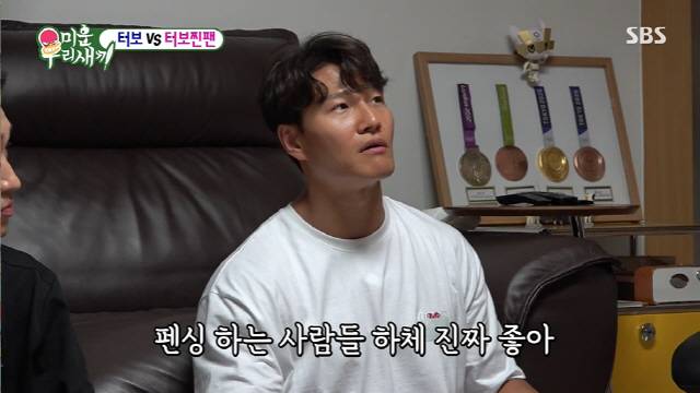 김종국은 금메달을 목에 걸어보고 펜싱칼을 잡아드는 등 한껏 신이 났다. 구본길은 김종국의 자세에 "진짜 잘한다"라고 칭찬을 아끼지 않았다. 1등급 한우에 각종 채소가 준비된 마라탕, 좋아하는 김희철에 반면 김종국은 고개를 저었다. 구본길은 "저는 정환이형 보다 매운 걸 잘 먹는 사람을 못봤다"라고 혀를 내둘렀다. 화끈하게 끓여진 마라탕. 김종국은 "맛있는데 맵다"라면서 자꾸 먹었다.