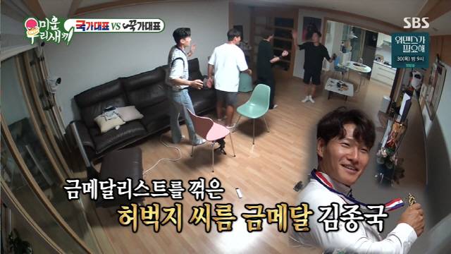 펜싱 금메달리스트 김정환은 김희철과 친구였다. 마찬가지로 금메달리스트 구본길 역시 김종국의 집을 찾았다. 김종국은 "내가 제일 가고 싶은 게 선수촌이다. 웨이트장이 디즈니랜드다. 좋은 기계는 다 있다"라고 했다.