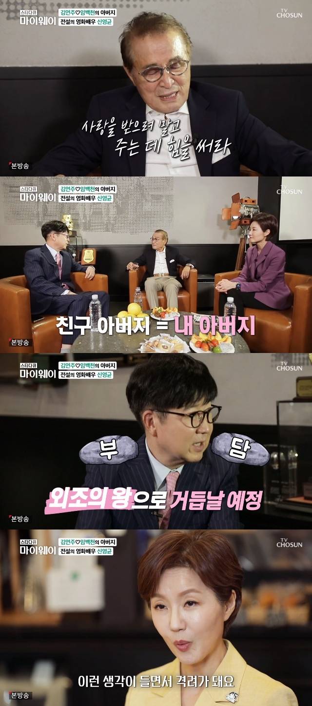김연주-임백천 부부의 결혼식 주례를 섰던 신영균은 주례를 수락한 이유에 대해 "자네가 부탁을 하는데 내가 당연히 한다"라고 말했다. 임백천은 "저희가 MC 1호 커플이었다. 문화인 중에서 가장 존경받고 제일 열심히 사셨던 분이 아버님이셨다. 제 판단에. 그래서 제가 부탁을 드렸던 거다"라고 당시 부탁을 했던 이유를 고백했다.