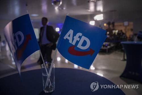 epa09489826 Party flags are seen ahead of the Alternative for Germany (AfD) election event in Berlin, Germany, 26 September 2021. About 60 million Germans are eligible to vote in the elections for a new federal parliament, the 20th Bundestag. EPA/MARTIN DIVISEK / POOL
