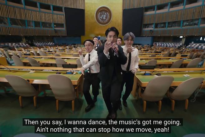 2018년, 2020년에 이어 세 번째 유엔 연단에 오른 BTS는 공연에 앞서 연설도 했다.
