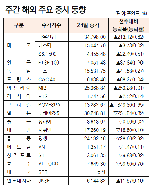 [표]주간 해외 주요 증시 동향(9월 23~24일)