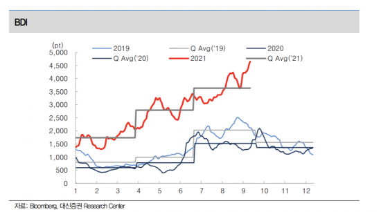 9월과 10월 BDI도 높은 수준을 유지할 전망인데 이에 따라 4분기 실적도 3분기 실적을 넘어설 것으로 분석된다.