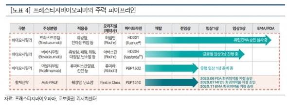 바이오시밀러 사업에서도 모멘텀을 기대했다. 프레스티지바이오파마는 올해 안에 아바스틴 바이오시밀러 ‘HD204’의 임상 3상을 발표할 예정이다. 허셉틴 시밀러 ‘HD201’ 역시 연내유렵의약품청(EMA) 승인을 목표로 하고 있다.