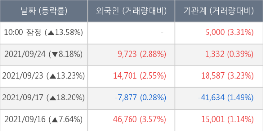 ※ 사모펀드 등 일부 기관의 순매매량은 표시되지 않음이 시각 거래소에서 데브시스터즈 이외에도 일성건설(24.21%), 아난티(11.39%), 플랜티넷(10.45%), 선도전기(15.26%), 이스타코(10.06%) 등이 상승세를 보이고 있다.
