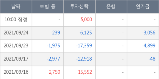 10시 00분 잠정집계에 따르면, 기관이 데브시스터즈를 5,000주 순매수 중이다. 기관 중에 투자신탁의 자금이 유입되었다.