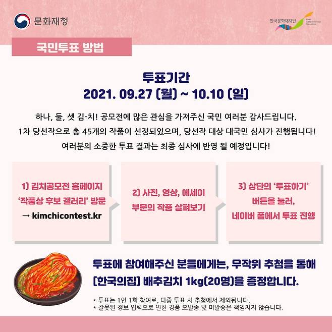 <하나, 둘, 셋 김치공모전> 국민투표 방법